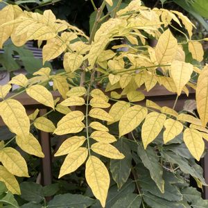 11月06日(木)曇り🌥️ おはようございます٩(๑❛ᴗ❛๑)۶✴️ 後ろお隣さんの庭、黄色く色づく 藤の葉っぱ よく見ると意外と 綺麗、 節の葉の紅葉💛💛💛💛