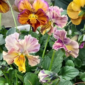 ビオラ横浜セレクション 花まつり 寒色系が多い我が家のビオラ、 暖色系も咲いてます🧡💛💗 ひとつひとつが個性的、パステル画のようです。