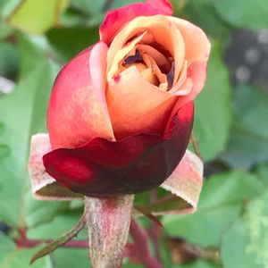 ディスタントドラムス ピンクとオレンジのやわらかな グラデーションのバラさん その外側の鎧のような花びらは とっても深い深い赤 寒い気温の中、咲いてくれてありがとう❤️ ゆっくりと見ていたい素敵なバラさんです🌹 🏷水曜ローズショー参加します♡