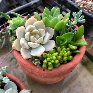 センペルの宝石箱と呼んでいるセンペル丼の隙間に色々なセンペル植えました。 センペルも子持ち蓮華みたいにお花が咲くと⭐になるんですね、知らなかった😅