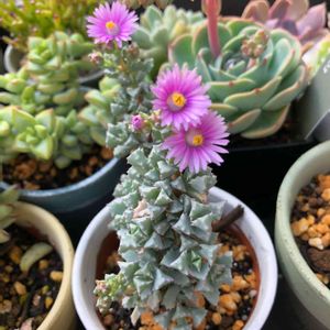 琴爪菊 購入時の札は白鳳菊になってましたが… 爪あるので琴爪菊ですよね💦 紅稚児の後ろにいたので沢山つぼみ出てるの知らなかった(^^; メセン系のお花初めてです(^^) ピンクで可愛い❤ ここ数日の寒さで紅稚児が赤く染まってました🎵 連休明けの1週間疲れて昨夜は早々寝落ち。 早朝から多肉メンテに癒されました(*´ω`*)