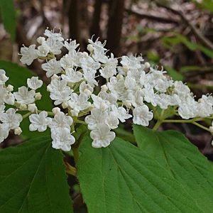 山道で見かけた、白い小さな花をたくさん付けているのは「コバノガマズミ(小葉のガマズミ)」漢字で書いた方が分かりやすい。😃 ガマズミというくらいなので、秋には真っ赤な実が熟します。😊🤗