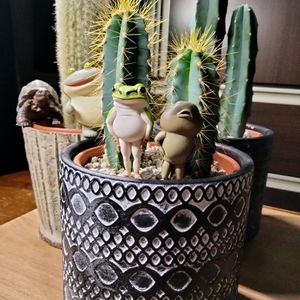 ↗怪魔玉🌵 お花が咲いてる? 蘇鉄麒麟🌵と違いが 分かりませ〜ん😅 ↘🟣紫太陽さん 髪飾り🏵 3つ目の花芽かな? ←サボ🌵さん アズレウス🌵かな? お名前分かる方🥺🙏 教えて下さい😵💫 ❑ 豆腐チャン ❑ 登っちゃダメだよ〜😱💦
