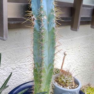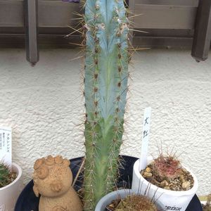 アズレウス柱、冬の凍傷からほぼ復活‼️伸びてます😁🎶🎶 下のサボテンは動き無し😅💦 🏷️棒の日 🏷️ワンワン祭り 撮影で30分外に居ると、あつさで汗が顔からポタポタ😰💦💦