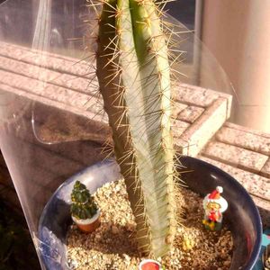 柱サボテン アズレウス。 クリスマスの今日から寒波襲来!って聞いて、病院で使用済みのフェースガードを北側に取り付けてみました。効果あるかな❓️微妙😥