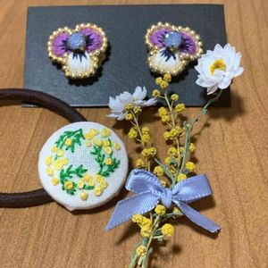 だいすきな仲良し同僚から ハンドメイドのビオラのピアス♡ ミモザの刺繍ヘアゴム♡꒰ ♡´∀`♡ ꒱ 器用すぎてうらやましいです♡ 特別な日などに大切につかいます ありがとう 可愛いなぁ~( *´艸`) なんだかんだで忙しくて またまた久しぶりpicに(^▽^;) 最近ドライフラワーで頭の中がいっぱいで 脳内、多肉とセダムとドライフラワーで いっぱいです♡笑(。•̀◡-)✧