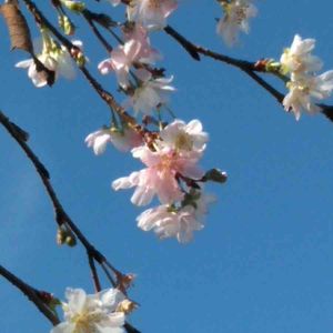 右の低木の名前が分かりません。 ご近所さんが分けてくれました。 今年はこの時期に蕾が膨らみ、実もなっています。 同じ庭でジュウガツサクラも咲き始めました。植樹して8年目、幹も太くなりました。記念樹です。 2022.2.追記 ミヤマシキミの果実と蕾