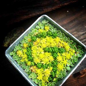 こちらも日の当たらない花壇から救出寄せ植えしました。 真ん中の七福神はズルしてデカく育った子をgetして、いかにも自分が育てた風で😅 周りのセダム達は増やしたいので隙間が埋まるくらい増えてくれるといいのですが🤔