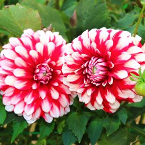 なんだか寄り添って咲いているようで微笑ましい感じ! ダリアって元気くれる花って感じがするなぁ この暑さの中元気に咲いてます💕 (*´꒳`*)