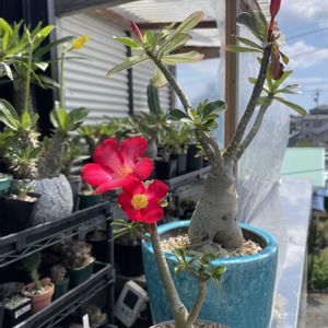 アデさん開花🌺 ①後ろの水色の鉢の挿し木ですが 後ろの鉢が咲きません…… ②なんでかなーと鉢底を見るとバッチバチの根鉢… これが原因なのかな〜💦 メンバーさんが自家受粉成功しているpicがあったので 室内でちょんちょんしてみることに… ③シべ?よく分からないなー長っ ④こちらはねじれているように蘂が閉じている ⑤綿棒でなぞってみたがもっと奥なのか? ちょっと分かりません💦 わかる方いたら教えてください🙂↕️⋆꙳