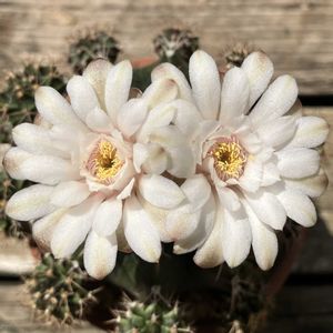 パキポディウム グラキリス 沢山お花を付けたので今年は種を採りたい。 自家不和合性と言って他の個体と受粉させないと種ができないそうなんですが、沢山咲いてるので同一個体で受粉作業してみた。 pic2は採取した花粉 pic3は受粉作業 別のグラキリスも花芽が伸びてきてるし、恵比寿大黒の実生も伸びてきてる。 今年は色々チャレンジできそう