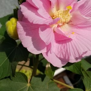 見事に結実しました(^-^) 花粉元は赤色のなんとかハイビスカス スイフヨウもハイビスカスなので受粉試しました! 今咲いてるこの花もまた違うピンク色のハイビスカスに受粉してみた