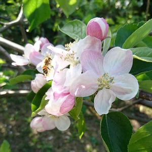 庭の林檎に蜜蜂さん🐝 いらっしゃいませ🍯 ありがとうございます🍎