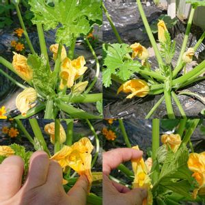 朝から ズッキーニの受粉に挑戦👍️ 教えて頂いたので、更に検索してやってミタ((( ;゚Д゚))) 雌花、雄花の区別も出来た🎵 2~3個は成功している予定です(=^ェ^=)