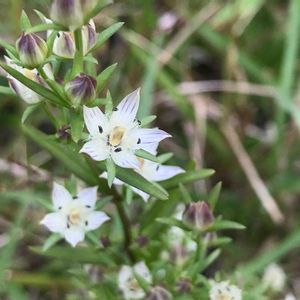 センプリ[千振] リンドウ科 生薬はトウヤク[当薬] 和名は千回振り出し(煎じ)てもまだ苦いというたとえから。 見に行くのが少し遅かったようでシベの約が落ちていたり、縞の色が薄くなっていました。ひとつだけ咲きかけの花が残っていました