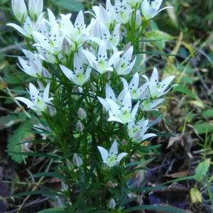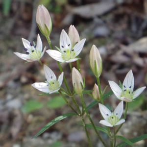 【センブリ】 日本、朝鮮半島、中国を原産とするリンドウ科二年草 古くから健胃剤などの民間薬として利用される。 北海道から九州まで、日当たりのいい草地などに自生する。 8月から11月にかけて、花弁がとがった星形の白い花を多数咲かせる。 草丈:20~40cm、 開花期: 8月~11月 花色:白(紫色のすじが入る) 秋吉台@美祢市