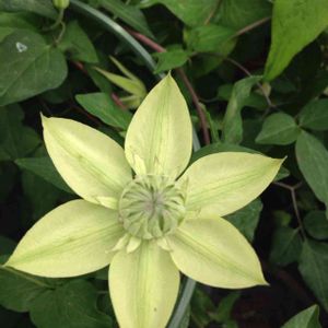 他のクレマチスはまだ蕾から蕾以下なのにこの子は誇らしげに咲いています。 放任主義でも毎年咲いてくれる優等生✨