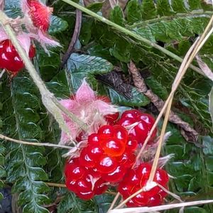 赤岩山の奥の院にて フユイチゴが一面 真っ赤な実で綺麗でした。 鳥も食べないのですね。