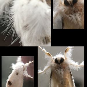 閲覧注意デス!ごめんなさい! 私も蛾は苦手なのですが、ふわふわな可愛い姿に惹かれてしまい、マクロレンズを取り出して観察してしまいました! 翅のふわふわはもっとズームしても動物の毛並みのよう♪♪ 更にアップもあります!