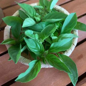 今日の収穫♪ …収穫というか、、、 花が咲きそうなので摘み取りました😅 苗でお迎えしていたレモンバジルさん、弱々しかったので、別で種からも育てようと試みましたが、たくさん撒いたのに、 まさかの一つも発芽せず…😢😢 苗の方が元気に育ってくれて良かった😊 レモン バジル