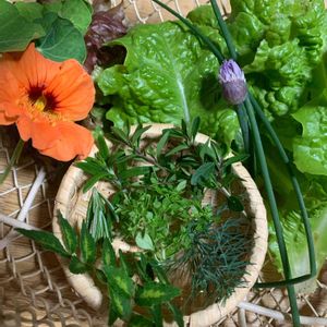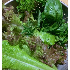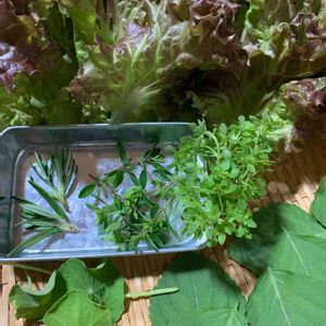 今日の収穫♪ ごちそうさまでした🤭💕 我が家のスタメン✨😆 サンチュ、サニーレタス、アフロバジル、バジル、タイム、ローズマリー (いつもお馴染み、代わり映えなしでごめんなさい💦😅)