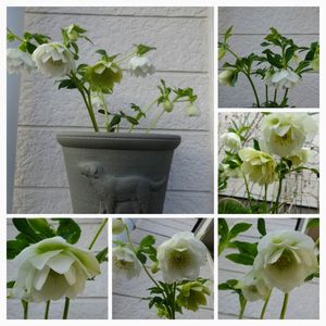 今日のお花、クリスマスローズです。これもおまけでもらった八重の白花😺