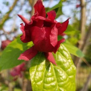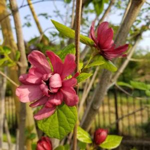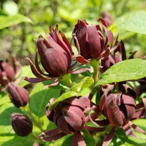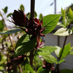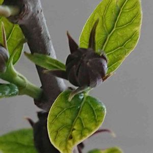 植え付けて2年目。今年も蕾をつけてくれました❤️ 苗の名称はクロバナロウバイでしたが、匂いもないし葉の裏に毛もないので恐らくアメリカロウバイだと思います