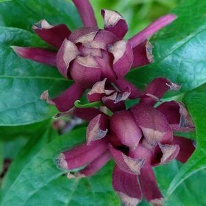 クロバナロウバイ、咲いてきました💜 強い子🎵地下茎をのばしそこら辺からピョコピョコ顔を出します🌱🌱🌱 広範囲に出過ぎたのでいくつか掘り上げ、数本まとめて三カ所に植えました😌 こういう強くてカワイイ子はスペースを埋めるのに重宝します🎶