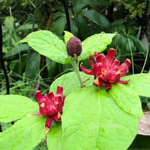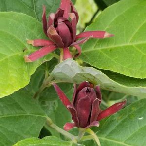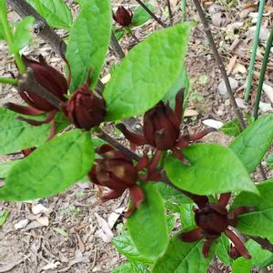 職場の花壇にシンボルツリーとしてお迎えした植木が昨日届いて、仕事終わってから暗い中、主人と植え込みしました。 🌸カリカンサス ハートレッジワイン🌸 クロバナロウバイとナツロウバイとの種間交雑。 花径7センチ、強健で耐病性、耐寒性に優れる。芳香あり。 花がひとつだけ咲いてて、昨日は開いてたのに、今朝はしぼみかけ。 暑いから、枯れないといいけど💦