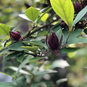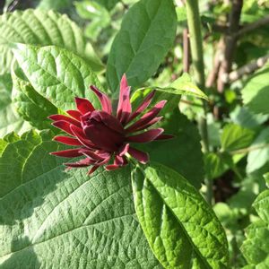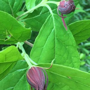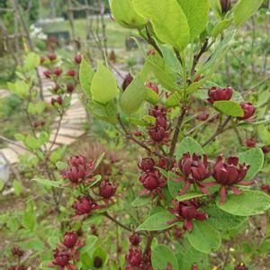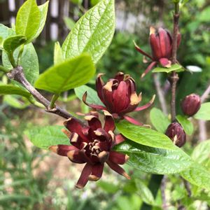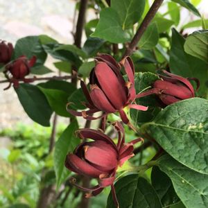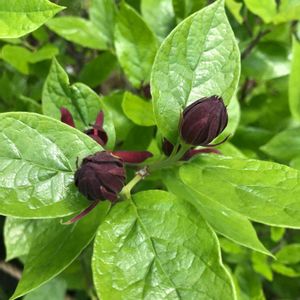 今日のお花 蝋梅 黄色の蝋梅とは属が違いますが ロウバイ科なので投稿させて 下さいね 🌱黒花蝋梅🌱 暑さにも寒さにも強い花木 5月前位から7月まで暗紫紅色の 落着きのある花が沢山咲き続け ます 茶花として良く利用されてます 全草 種子に有毒がありますので口に入れたりしないで下さいね 🌱花言葉🌱 深い慈愛 同情 大好きな花です