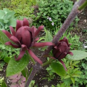 アメリカ原産 ロウバイ科クロバナロウバイ属 はじめて会いました* カリカンサスとは違いお花が黒く小さい 最初見た時お花が終わっているのかと思いました… 25/04/19pic