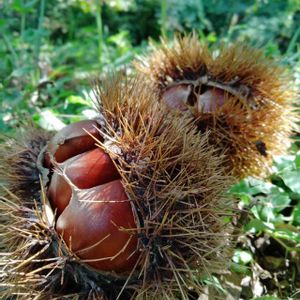庭の利平栗を収穫した! 利平は落ちないから棒で叩いて落とすんよ。 採れたてを調理したり渋皮煮にするのが1番おいしいんよ!