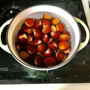 おはようございます😊♪ 栗の渋皮煮、 出来ましたよ~😊✨。 栗は渋皮に傷が付かないように 剥いて、たっぷりの水に小さじ1程の重曹を入れ、 1時間程コトコト炊き、 水にさらしては火にかけるを、濁りが無くなるまで繰り返し、砂糖を3回程に分けて 加えて煮込み いい感じになってきたら、 好みのリキュールと バニラを加えます😊。 コラージュは 庭に咲いた白いキキョウと 彼岸花😄。 彼岸花は近くの線路沿いに 咲いていて、 散歩途中にパチリ😊✨。 今日も素敵な1日に なりますように✨✨✨✨✨。