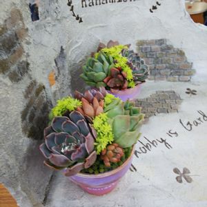 初めての多肉チマチマ寄せ(^-^)v 難しかった‼️ 色々な、作業があるのです( ; ゜Д゜) 何時も素敵な多肉寄せを投稿している皆さんを、心からご尊敬申し上げます(*´∀`) 本心です(о´∀`о) 私の鉢は、上のです 寄せてるうちに、土が 少なくなって、小さくなりました~😅 隣のブーちゃんさんは、先生に誉められてた(*_*) 良いなぁ💔 先生の、多肉は育てちゃ駄目なんだよ、このままの姿を維持するようにね 肥料は要らないよ😃 の言葉が、納得でした(*´∀`)