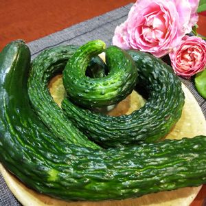 薔薇🌹クロード モネさん🎵💕 夫の収穫、曲がりキューリ😁 イボイボの黒珊瑚キュウリです🥒柔らかくて美味しいです😋🍴💕 キュウリが曲がるのは 水分が足りないらしい と新聞に記載されてました❗️この頃は☔️が少ないもの~夫の管理のせいではないんだ~😆 それにしても曲がってる ~😁