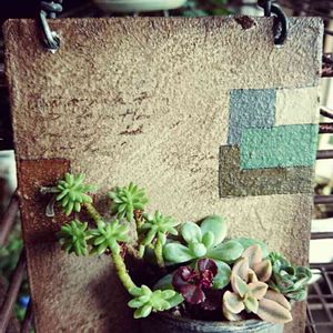 いつかのイベントで購入したmamakukuruさんという方の素敵な壁掛け缶です。 チビたらいの中身を入れ替えて生き返りました💗 セダムは最初に入れてもらっていたもの。育ってしまった他の中身も大事に別鉢で育てています。