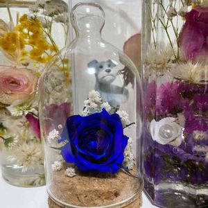 爽やかな、濃淡の異なる青い薔薇のプリザーブドフラワーが エレガントな雰囲気のアレンジメントです シルバーのリボンがゆるやかに、流れるように輝きを添えます✨ お誕生日、記念日のプレゼントや、 ウェディングのプレゼントにもおすすめのお花です🎁 青い薔薇の花言葉は、夢かなうです💙