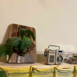 ビカクシダの板を入手したので 早速、水苔増しという方法で板を替えてみました☺️ 板に空いてる穴にテグスを通してやってみましたが 水苔が全く纏まらず… なんか違うな〜 一からやり直し! と 3回程やったところでやっと YouTuber様方のお力を借りるというひらめきが…🤣 慣れないことをしたり ウスネオイデスの手入れをしたりで手を酷使し過ぎて 握力が無くなり箸も落とすしスマホのフリック入力もまともに出来ません😱 指じゃ無く、腕ごと動かして それでやっとできる〜🤣笑 テグスが上手く扱えなかったので 今日はひとまず糸で応急的に😅 手が落ち着いたところで、糸だけまた変えようかと思います🙃 今晩はリビングに置いて 眺めながら寝ます🥰