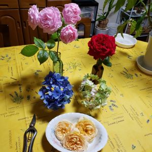 こんな風に、座卓が花でもりもりになりました。 おやすみなさい❗