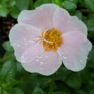 これは、普段は紹介しないポーチュラカです。 雨の中、咲き続けていました。明日の朝には閉じます。ポーチュラカは、先っぽに3~5個のつぼみをつけていますので、咲き終わったものを丁寧に、摘み取ります。 脇役ですが、とても手間暇がかかるお花です。白地に薄いピンクがかかっているところに艶があります。 ポーチュラカはさし芽で、爆発的に増えるので、適当にしておかなければ、引き抜くときがとても大変です。一昨年前に、体験しました。