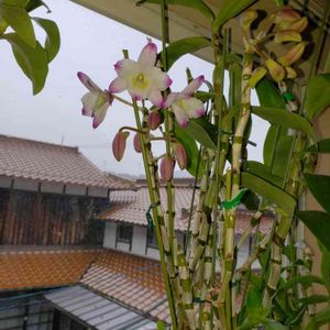 花が終わり、少し枯れかけていたため、捨て値で売られていたデンドロビュームを買い、育ててきました。 はじめて、その花のお顔を拝見させていただきました。縁が紫色、中に黄緑、中間は白色の花でした。 ほかにも花芽を沢山つけてくれています。 お花さん、ありがとう。 追伸(2019年2月3日18時11分) 名前がわかりました。 「セカンドラブ・キラメキ」でした。