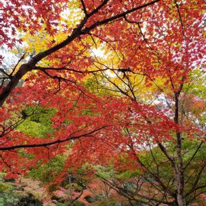今日、宮島の紅葉谷庭園で一番お気に入りの一枚 妻とこの瞬間を共有しました 緑→黄→橙→赤(深紅)のゲーテ色彩論の高進を感じました もう一方の高進経路は、 緑→青→菫(すみれ)→赤(深紅)です しかし、後者の色の移り変わりは、自然界で見たような記憶がありません よく考えて想像してみると、素潜りした海の中から、海藻(緑)、空(青→すみれ)、真っ赤に燃える太陽をチラッと見たときに、この色の移り変わりを見たような気がします さて、今日、自宅に帰り、お義母さんのデイケアからの帰宅を玄関で待っていると、妻が後方から、 「お父さん、絶対に私より早く死なないでね! 私、一人で生きていけない」 それで、 「心配するな、僕が君より早く死ぬわけないだろう。約束したんだから。」 「うん、わかった、必ずよ!」 本当は、僕だって弱いのに、いつも、赤く元気に生きていかないといけないみたい しかし、この紅葉はとても素敵 光による光合成のスピードと老化による差なのかもしれないが、それが織り成す彩りは素晴らしい 光と闇よ、ありがとう