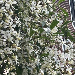 クラリンドウ 昨日の今帰仁村の民家の壁に這うよ うにクラリンドウが満開していま す。クラリンドウはその美しい花と 独特の香りで多くの人を魅了する花 です。熱帯アジアが原産のクラリン ドウは甘く上品な香りが特徴で香水 の原料にも使われます。(*´-`)❣️