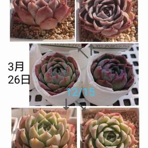 「コロラータ×ラズベリーアイス」 Colorata × Raspberry ice ベンケイソウ科 エケベリア属 やっと根っこ出てきたよ。 すべてがかわいいけど特に真ん中!