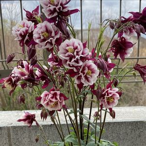 一昨年の秋播きのオダマキ ウィンキーローズ&ホワイト 咲き進んできました😍✨ クリーム色だった部分が白になって、名前通りに❣️ ヤバい(pq*´д`*).。・♡゚*