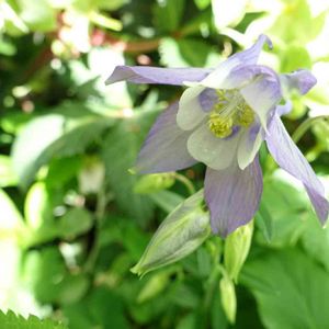 西洋オダマキ・ウインキー ブルー&ホワイト 写真では光の加減で薄紫に見えますが、実物は水色に近い色合いです オダマキさんも、色や形がたくさんあるので、どれもこれも育てたくなります💓 コレクション性が高い部類の花…やばい😂 日陰向きの花は貴重です🎵 少しずつ種類を増やしてしまいそう (2021.2 苗植込み~2021.4.5開花)