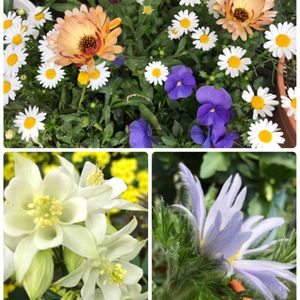 アンティークっぽいオレンジのカレンデュラコーヒークリームの寄せ植え🧡 ツボミが赤茶色で可愛いです💕 白いオダマキと西洋オキナグサ(3つ目のお花)も咲きました♪ 最近オダマキがマイブームで5種類お迎えしちゃいました😆