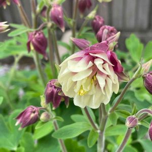 西洋オダマキ ウィンキーダブル 2018年に迎えたことのある苗の零れ種でした。 3年も経ち会えました✨