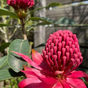 子ども部屋から📷 徐々にいい感じに👍🏽 斑入りビワの新芽とテロペアとアカシア、もう少ししたらカリステモンが咲きそうです😊