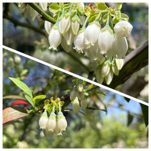 ブルーベリーの花が咲いています☺️ ①↑ブルーベリー ↓ワイルドブルーベリー どちらも沢山の花が咲ました🙌 ②遠近ではなく同じ距離から🫐 ワイルドブルーベリーが奥にある為か、昨年もワイルドの結実が良くなかったので 虫さんに頑張って貰える様にネットを沢山開けてみました🐝